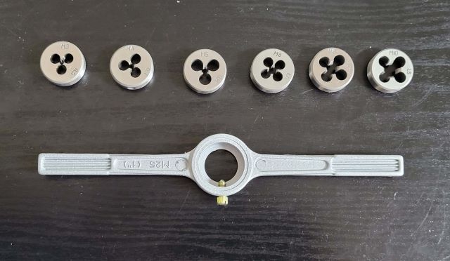 다이스와 봉재료의 크기가 반드시 맞아야 합니다.(예: M8 다이스, 8mm 봉으로) 무리하게 힘으로 돌리지 마세요. 공구 파손 또는 나사 산이 찢어집니다. 다이스 시작 전에 절삭유 바르면서 작업하시기 바랍니다. 재품의 수직 또는 수평 정렬이 중요합니다. 비뚤어지면 나사 삽입 불량이 발생합니다. 절삭 후 버 처리로 나사 조립이 원활히 되도록 합니다.