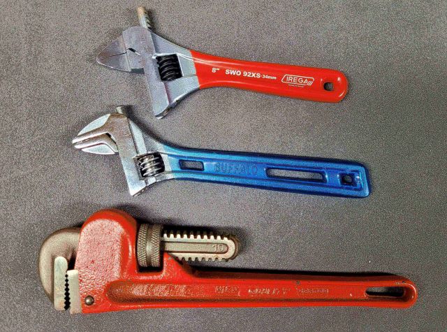 2. 파이프 렌치: 파이프 렌치는 특히 배관 작업에 사용되는 몽키 스패너의 일종입니다. 무거운 파이프와 관련된 작업을 처리하는데 적합합니다.